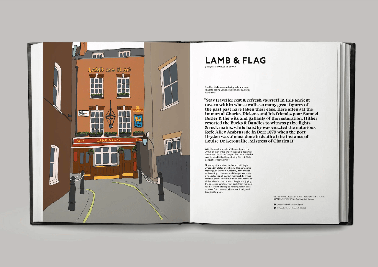With timeless bespoke illustrations for each pub, we try to capture the timeless essence of each venue and inspire the reader to venture for a pint or two down tippling street.